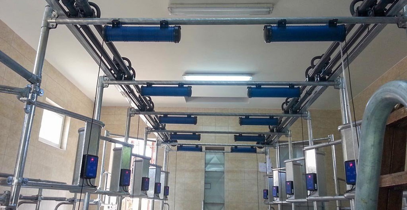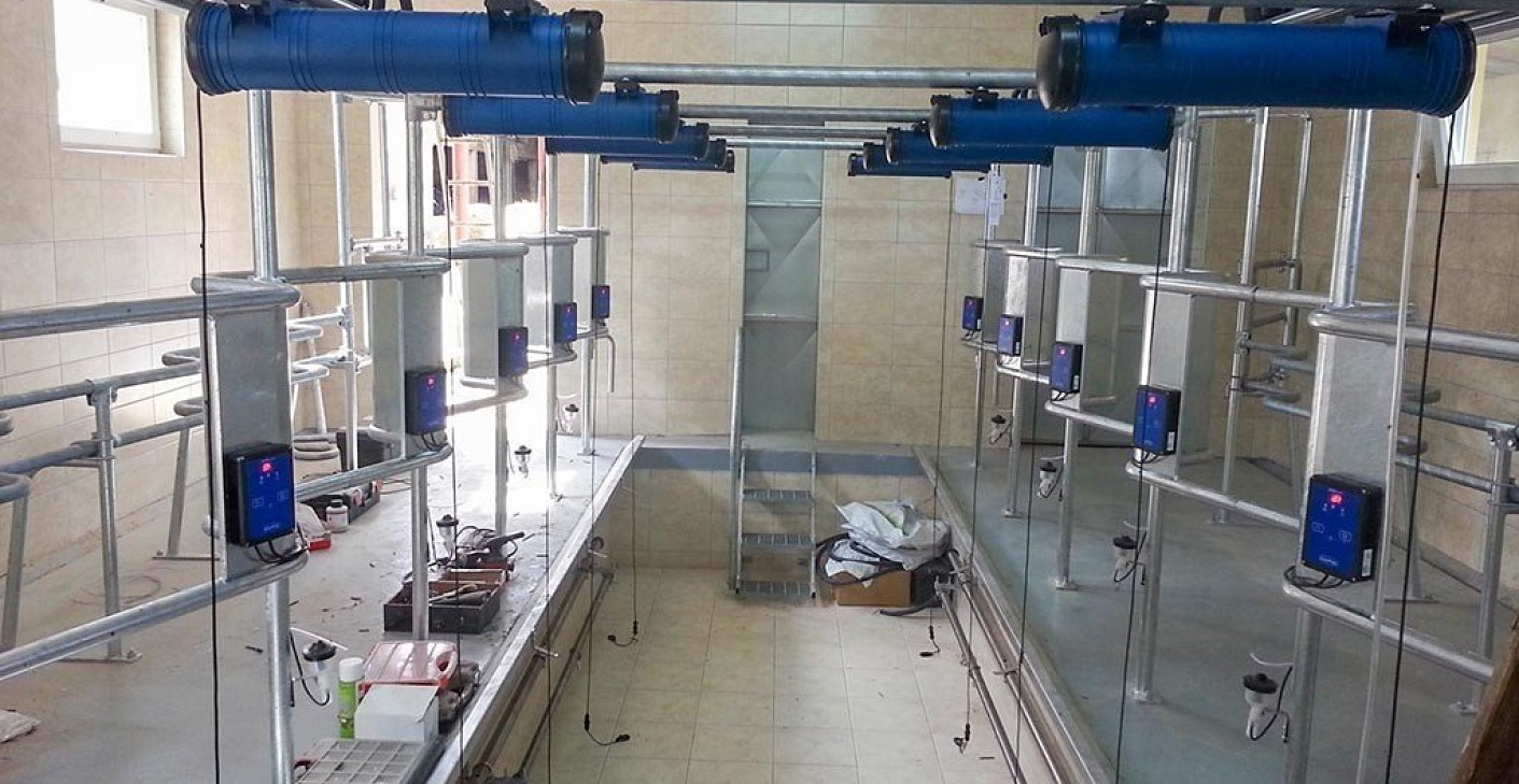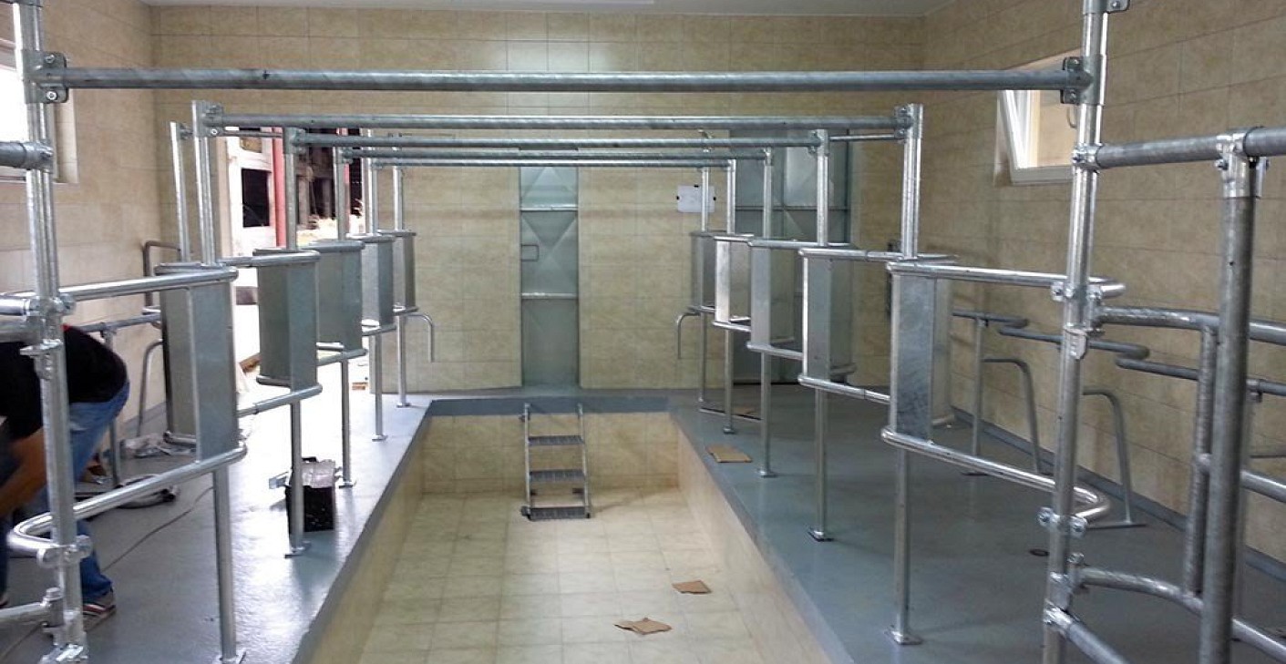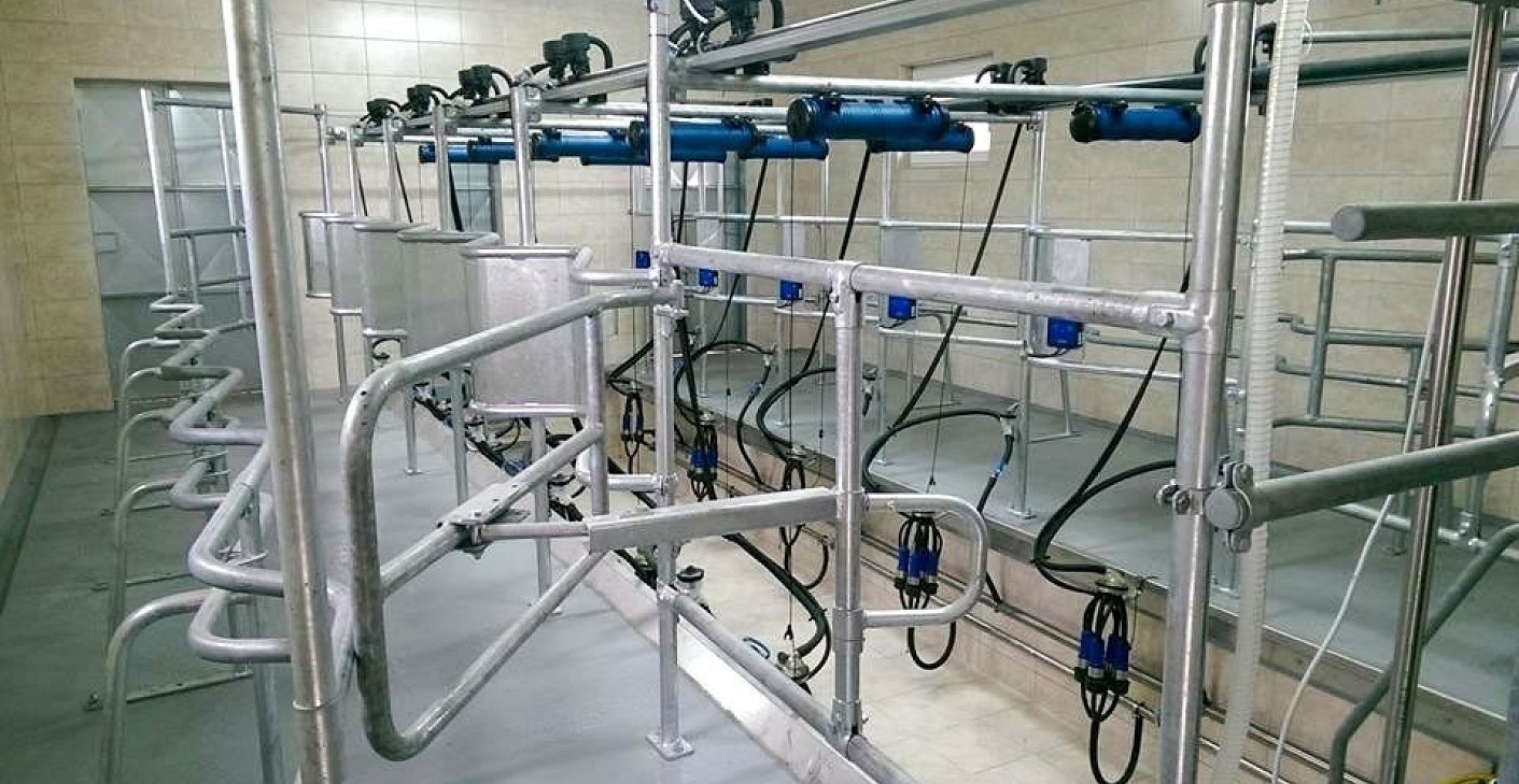 A 2x5-ös  fejőház, részben tűzihorganyzott, részben rozsdamentes acélból készült állásszerkezettel épitett, a helyszinen, TIG eljárással heggesztett konstrukció.