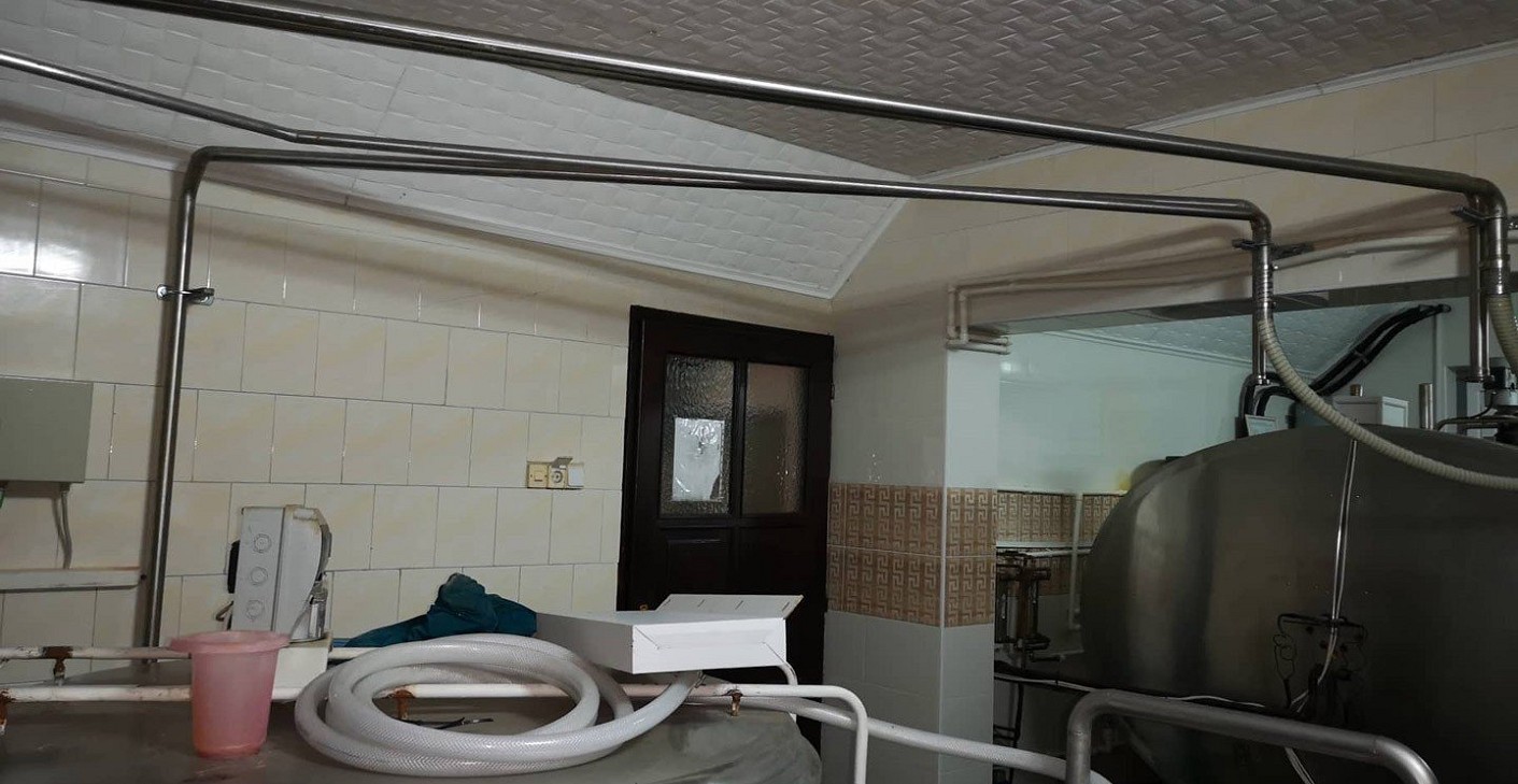 A 2x9-es halszálkás fejőrendszer egy helyszínen összeállított roszdamentes acélból készült konstrukcióra épült ameny TIG módszerrel lett összeheggesztve. A roszdamentes acél konstrukciót egyedi kinézet, hosszú életartam és könnyű karbantartás jellemzi.