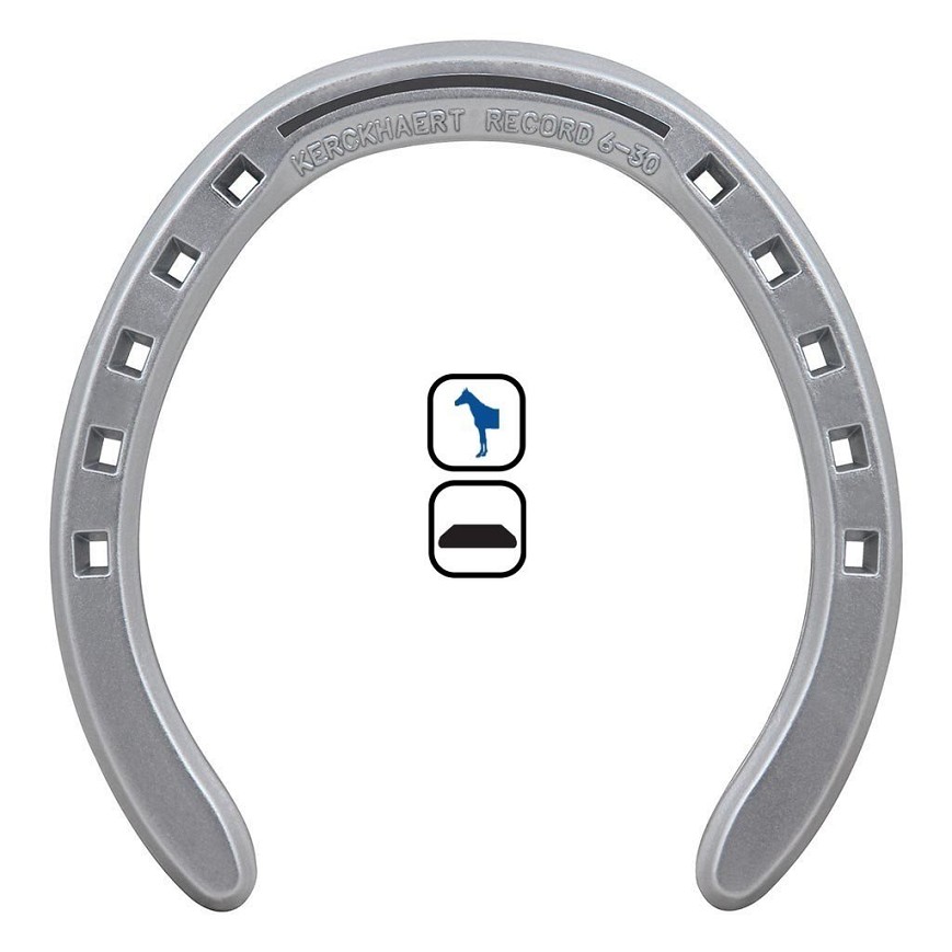 Alumíniumból készült kiváló minőségű lópatkó fém erősítéssel Alu Record 15x6mm, mellső lábakra, kápa nélkül, méret: 4-28, hossz: 119 mm, széleség: 119 mm.