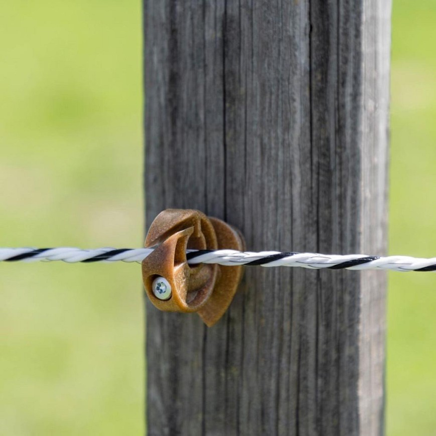 A csomag 50 darab szigetelőt tartalmaz, amelyek biztonságos és egyszerű megoldást kínálnak villanypásztor vezetékek, kötelek és szalagok rögzítéséhez, akár 10 mm vastagságig.