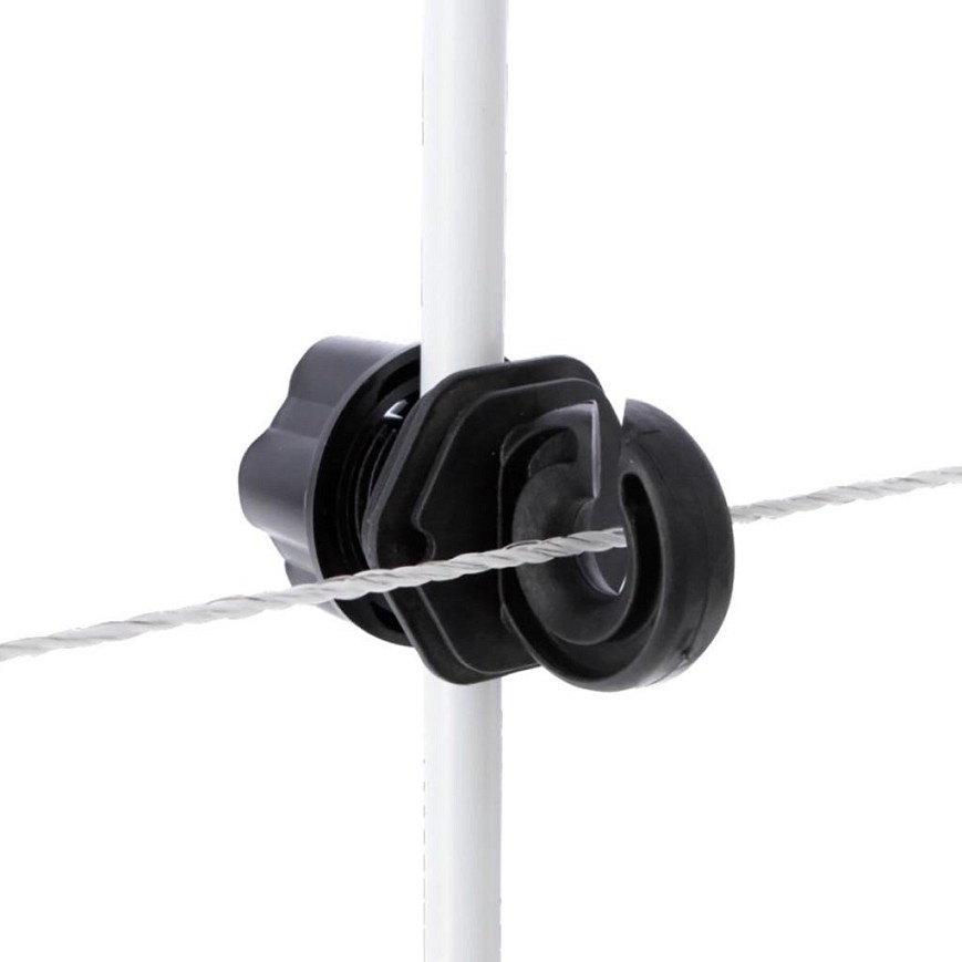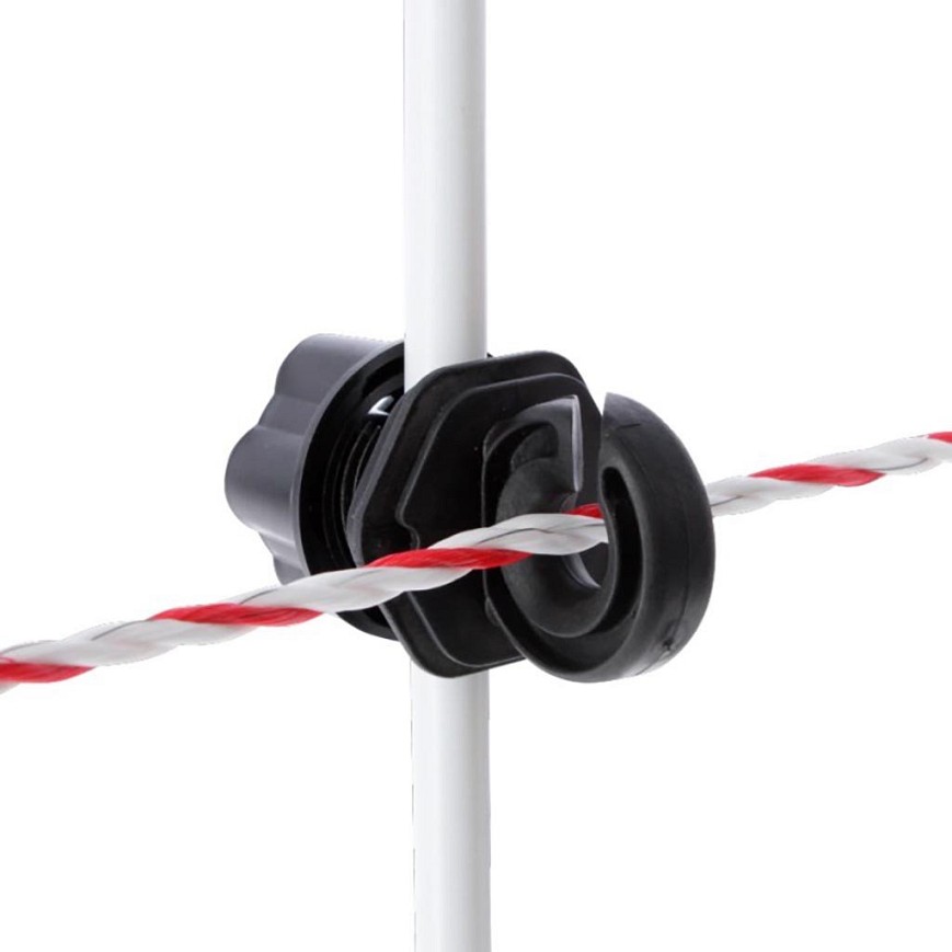 A Vario gyűrűs szigetelő megbízható és egyszerű megoldást kínál villanypásztor vezetékek és kötelek rögzítéséhez. Alkalmas fém vagy műanyag oszlopokra 7–19 mm átmérőig. Az ütésálló műanyagból készült szigetelő gyorsan, szerszám nélkül felszerelhető, és biztos tartást nyújt akár 10 mm vastagságú vezetéknek, kötélnek vagy szalagnak.