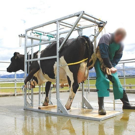 Boks za obradu papaka za krave je opremljen sa dva sigurnosna vitla - jedno za stomak i jedno za zadnju nogu. Kada se ručka otpusti, kočnica se odmah aktivira bez potrebe da rukovalac interveniše. Oba vitla su opremljena redukcijom 2: 1, što zahteva manje napora za osiguranje stoke.