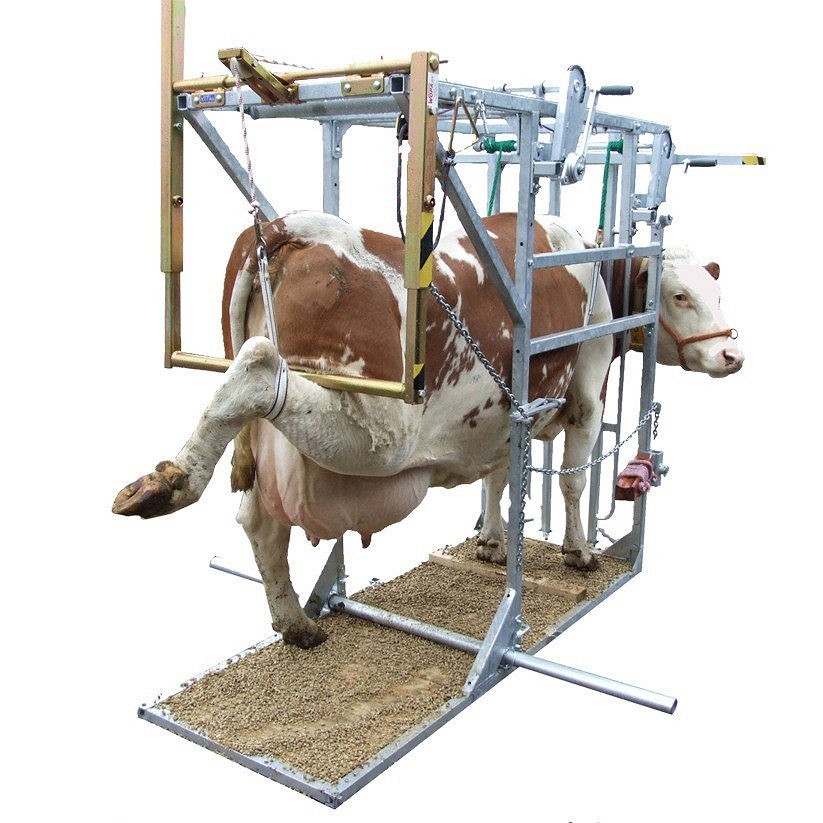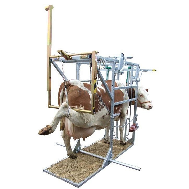 Boks za obradu papaka za krave je opremljen sa dva sigurnosna vitla - jedno za stomak i jedno za zadnju nogu. Kada se ručka otpusti, kočnica se odmah aktivira bez potrebe da rukovalac interveniše. Oba vitla su opremljena redukcijom 2: 1, što zahteva manje napora za osiguranje stoke.