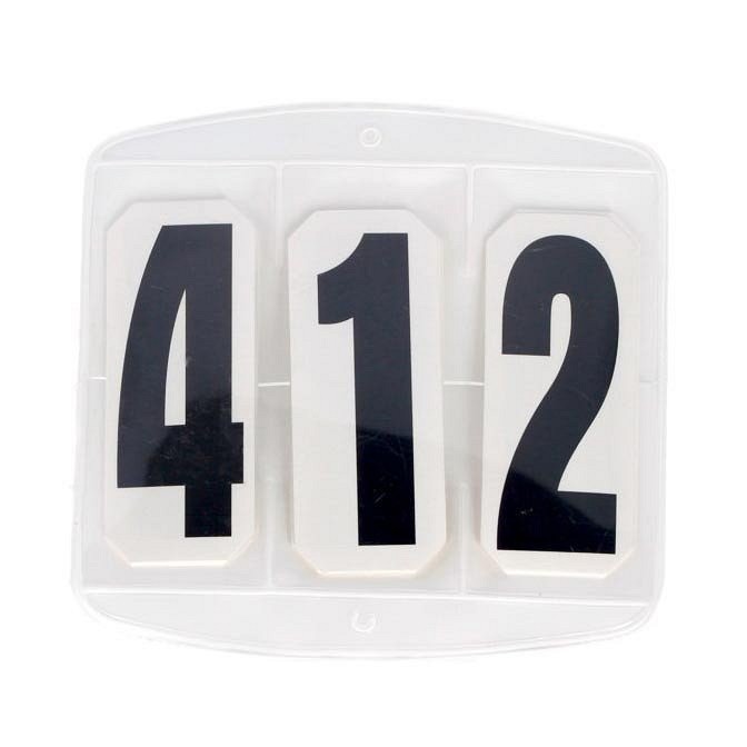 Praktičan set za obeležavanje konja na takmičenjima, izrađen od meke plastike. Futrola ima tri mesta za brojeve, a set uključuje tri kompletne garniture (000–999), omogućavajući lako podešavanje bilo kog broja.