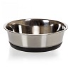 Činija za kućne ljubimce čelična 425ml je izrađena od nerđajućeg čelika, koji je jednostavan za održavanje i dugotrajan. Posuda za hranu za pse je napravljena sa gumiranim prstenom sa donje strane, koji sprečava klizanje posude po podu.
