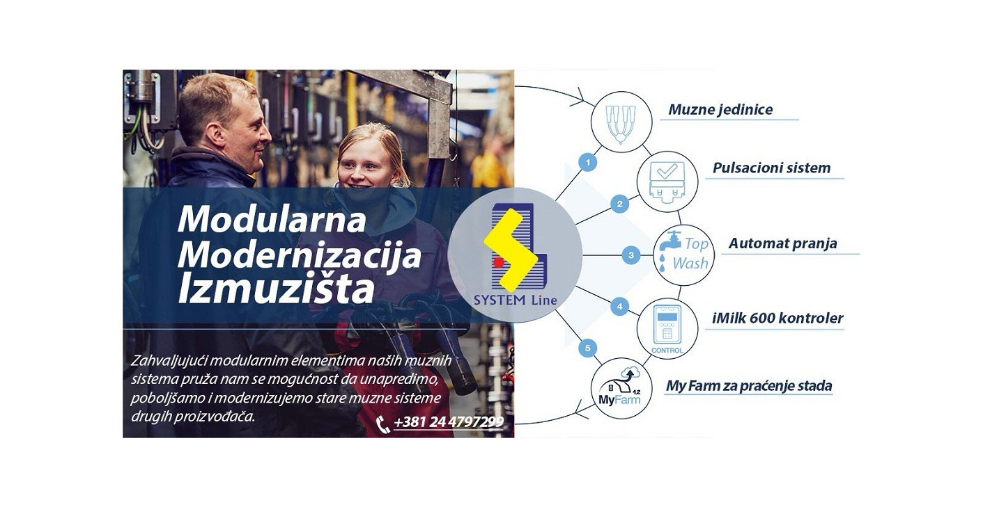 Kod starih muznih sistema jedan od većih problema predstavlja nabavka rezervnih delova. Često se oni više i ne proizvode ili su dostupni samo zamenski delovi malih privreda. Prednost naših muznih sistema je modularnost, odnosno da je kompatibilan sa svim ostalim muznim sistemima i mogu se nadograditi digitalni merači količine mleka (I.C.A.R. sertifikovani) na Westfalija ili Delaval muzne sisteme. Novi napredniji delovi muznih sistema se takodje mogu naknadno dograditi, implementirati na postojeće sisteme i samim tim pratiti uvek zahteve genetike i pružiti najbolje moguće svojim životinjama.
