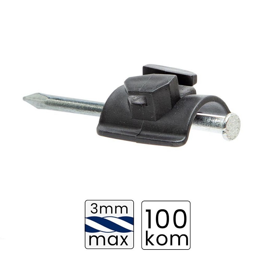 Izolator za jednostavno i brzo postavljanje žice za električnog pastira u drveni stub.  Isporučuje se u kompletu sa ekserom. Preporučuje se za tanke žice.
