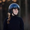 Elegantna kasačka kaciga sa plastičnim vizirom i zaštitom za uši od veštačke kože. Kopča ispod brade omogućava lako zatvaranje.