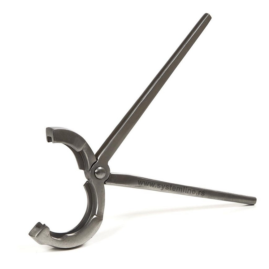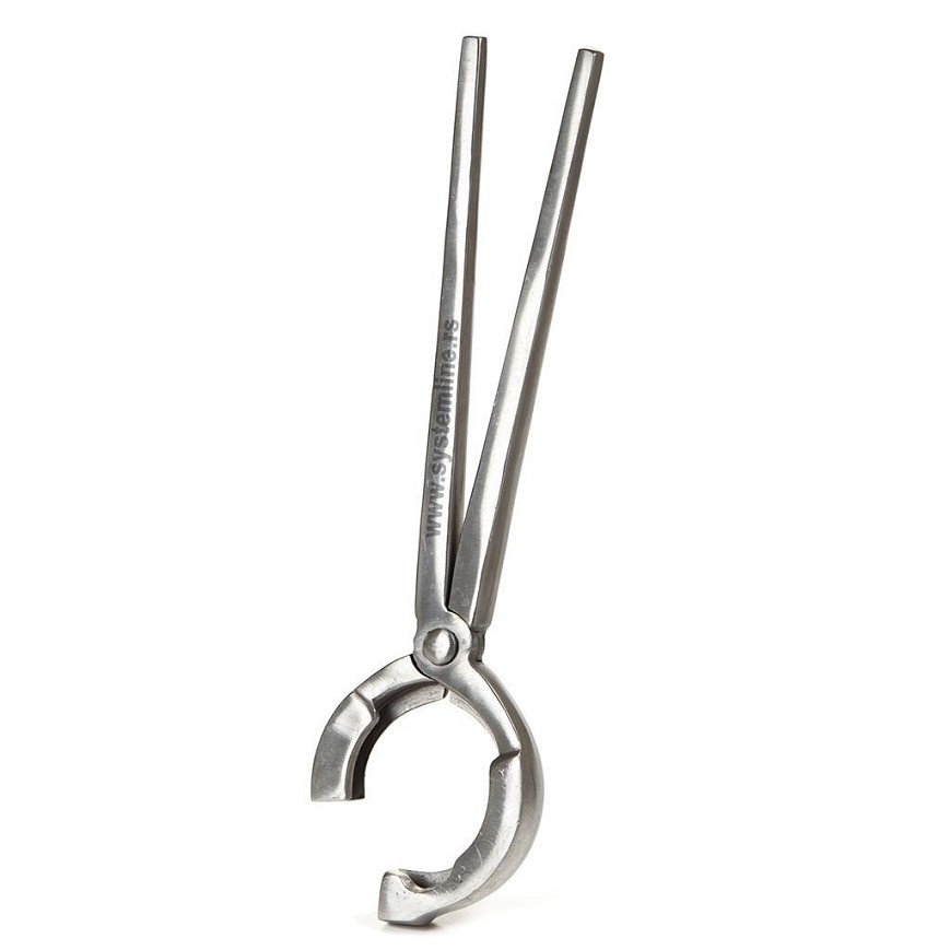 Klešta za postavljanje karike za bikove u nos. Nosni prsten se može umetnuti bez prethodnog probijanja nosnog septuma. Može se koristiti za karike od 52 do 54 mm. Napravljen od nerđajućeg čelika. Masivan robustan dizajn.
