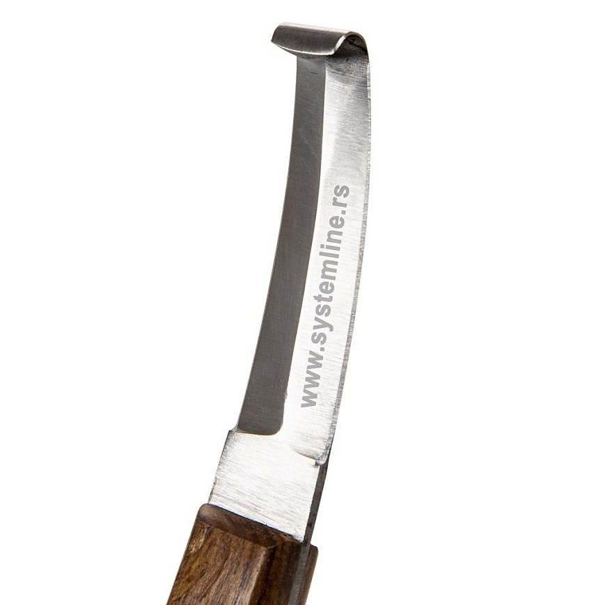 Nož za obradu kopita i papaka dvostrani levi profesionalni nož za obradu kopita. Sečiva je izrađen od specijalnog čelika predviđenog za sečiva. Zakrivljena oštrica pomaže u preciznom radu Ergonomična drvena drška.