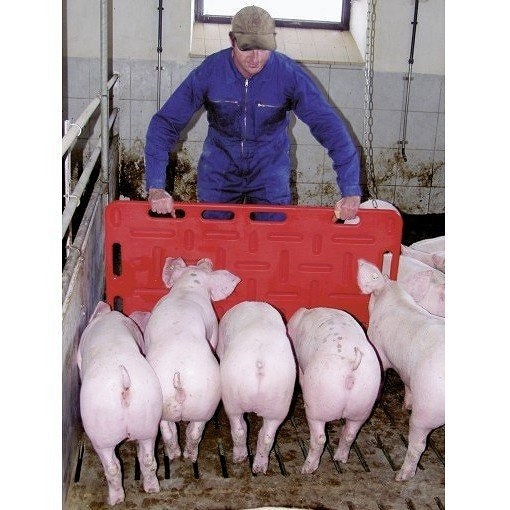 Plastična ploča za teranje svinja je napravljen od čvrste, nelomljive plastike. Lako se čisti, s tim sprečava prenos bakterija. Zahvaljujući rebrima veoma je jaka.