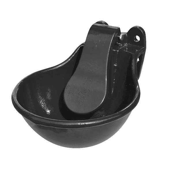 Emajlirana pojilica od livenog gvozdja za goveda u crnoj boji sa crnim jezičkom.