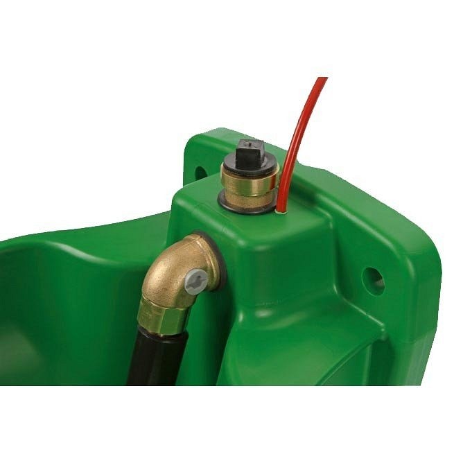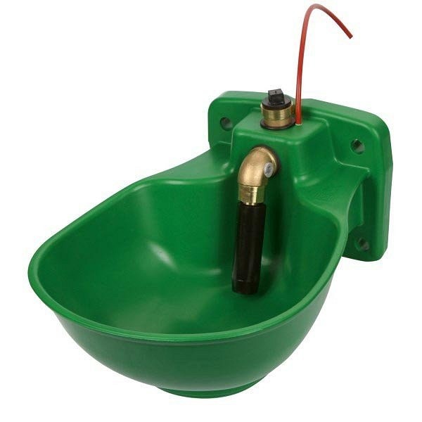 Jaka plastična pojilica sa cevastim mesinganim ventilom i ugrađenim termo kablom. Termo kabl je 230V i 73W. Grejni kabl zagreva posudu, ventil i 2 metra ceva za dovod vode. Pojilica ima ugrađen termostat za zaštitu od smrzavanja koji se uključuje na +3 stepeni celzijusa i isključuje se na +13 stepeni celzijusa. Protok vode je podesiv, maksimalno do 11 litara/min.