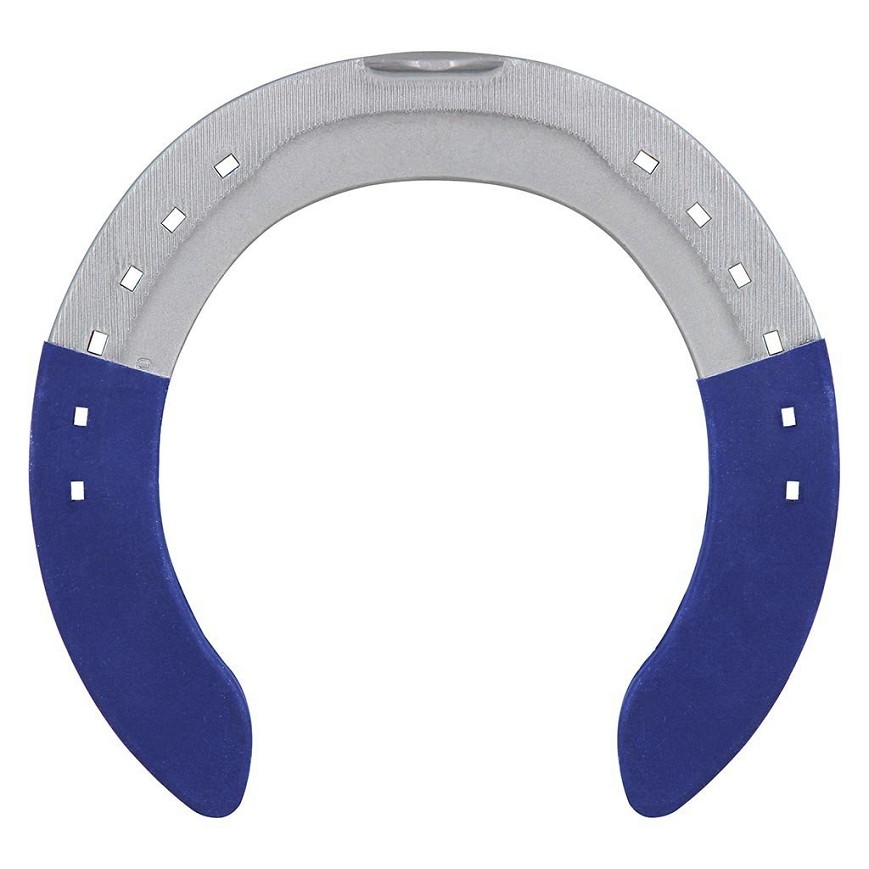 Aluminijumske potkovice sa metalnim ojačanjem i gumenom oblogom za potkivanje konja Super Sound Smart Bond, prednje, sa 1 kapnom na prstu, veličina: 4-28, dužina(A): 117 mm, širina(B): 125 mm.