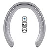 Aluminijumske potkovice sa metalnim ojačanjem za potkivanje konja Alu Outer Rim 8-34mm, zadnja, sa 1 kapnom na prstu, veličina: 8-34, dužina(A): 150 mm, širina(B): 136 mm.