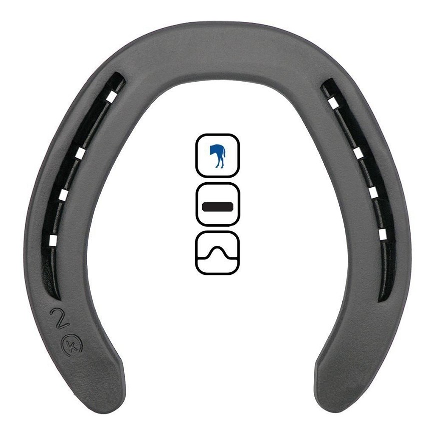 Čelične potkovice za konje DF 20x8mm, zadnje, sa dve bočne kapne, veličina: 0, dužina(A): 124 mm, širina(B): 116 mm