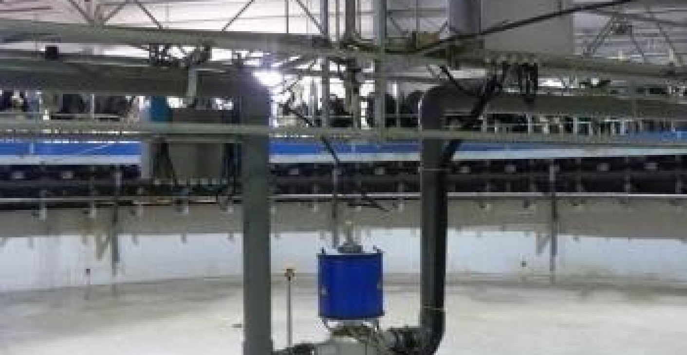 koja postavlja muzne jedinice. Oni stoje na 100 cm nižoj zoni od krava, što obezbeđuje lak rad ravnih leđa i dovoljan prostor za dostupnost grla. Platforma je predviđena za 40 grla na muži. One ulaze, staju na rotirajuću platformu i po postavljanju muzne jedinicee