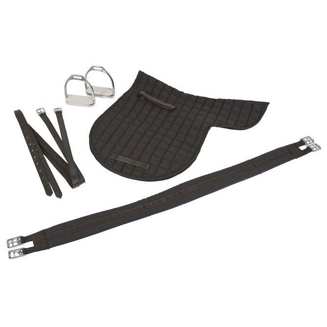 Komplet uključuje sve osnovne elemente (sedlo, podsedlo, uzengije, kaiš za uzengije i kolan), pa nije potrebno ništa dodatno kupovati.